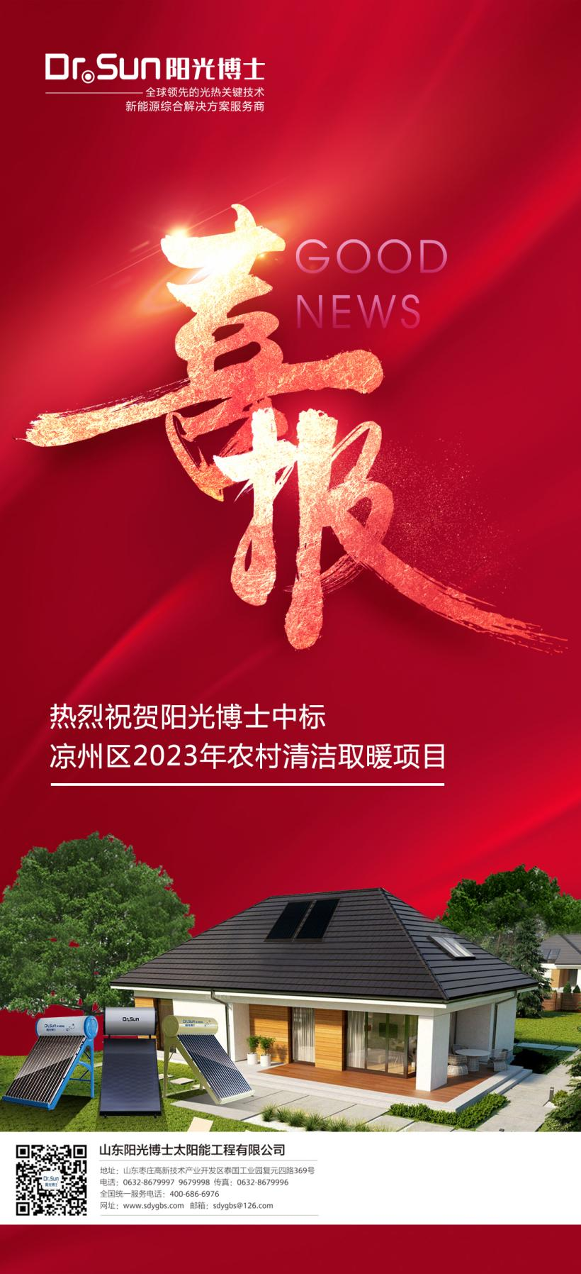 陽光博士憑借優(yōu)質(zhì)的產(chǎn)品質(zhì)量,過硬的技術(shù)能力,良好的市場口碑,在眾多競爭對手中脫穎而出,成功中標(biāo)涼州區(qū)2023年農(nóng)村分散農(nóng)戶清潔取暖改造項目。